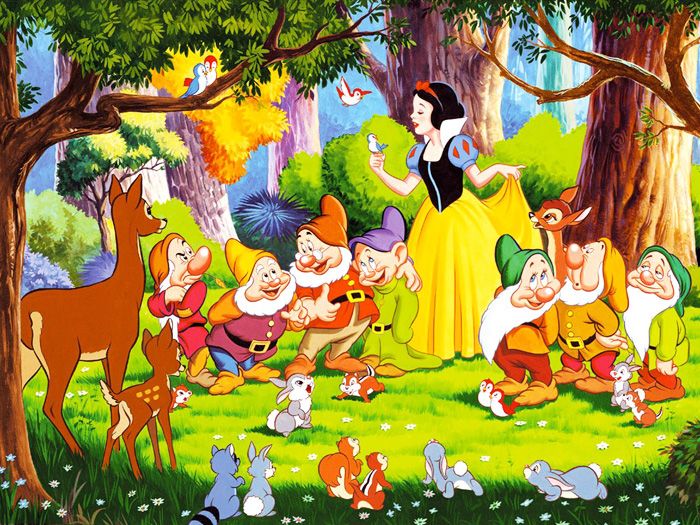 Иногда Белоснежка и гномы ходили в лес погулять, повеселиться, пособирать грибы и ягоды, поиграть с лесными зверюшками, с которыми Белоснежка и гномы были дружны.