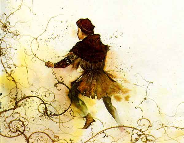 — Поесть захотелось? - спросила высокая-превысокая женщина. - Уходи отсюда поскорее, если не хочешь, чтобы тебя самого съели! Мой муж людоед, и самое его любимое блюдо - это мальчики, изжаренные на вертеле. Убирайся, пока цел, а то он скоро вернется домой.