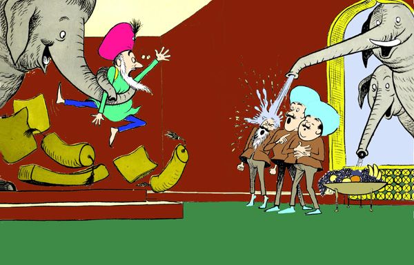 Такое соседство совсем расстроило короля. И вот в четвёртый раз он созвал свой совет. И в четвёртый раз мудрец нашёл выход - в королевский дворец прибыли слоны.