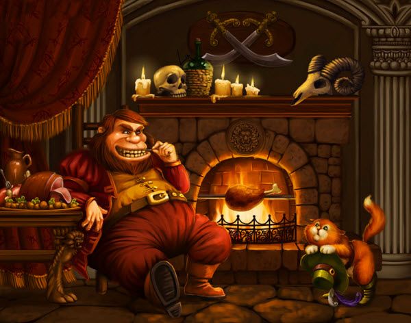 И вот, наконец, кот прибежал к воротам прекрасного замка. Тут жил один очень богатый великан-людоед. Никто на свете никогда не видел великана богаче этого. Все земли, по которым проехала королевская карета, были в его владении.