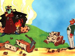 Проснулся Илья на заре и думает: "Дай-ка я проверю, что же в этом котле?" Подошёл к котлу, хотел крышку сдвинуть, а она тяжёлая, не поддаётся!