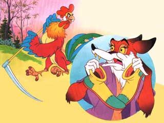 Лиса без памяти выбежала, петух взмахнул косой - её и след простыл!