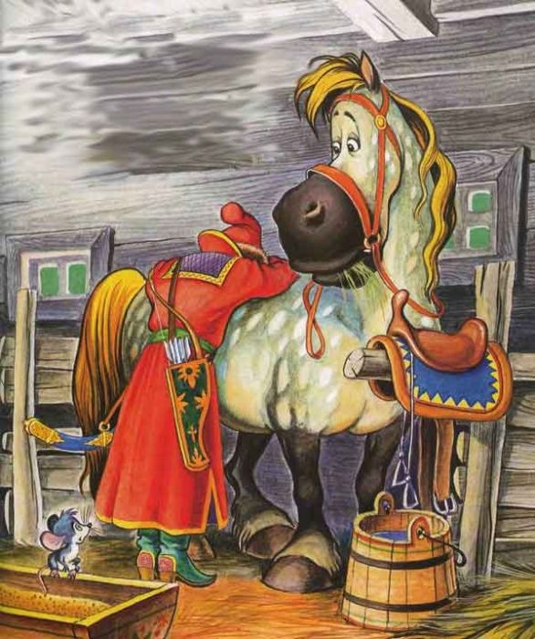 Стрелец залился горькими слезами и пошёл к своему богатырскому коню.